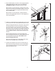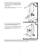 2. Attach a Wheel (66) to the base of the Uprights (69) with a Wheel Bolt (64) and a Nut (13) as shown. Do not overtighten the Bolt; the Wheel should turn freely. 2 64 66 69 With the help of a second person, carefully tip the treadmill onto its other side. See assembly steps 1 and 2, and attach the other Extension Leg (63), Round Base Pads (57), and Wheel (66). 13 With the help of a second person, carefully lower the base of the Uprights (69) to the floor so the Uprights are in the vertical position.