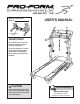 Model No. PMTL32706.0 Serial No. USER'S MANUAL Serial Number Decal QUESTIONS? As a manufacturer, we are committed to providing complete customer satisfaction. If you have questions, or if there are missing or damaged parts, please contact the establishment where you purchased the treadmill. CAUTION Read all precautions and instructions in this manual before using this equipment. Save this manual for future reference. Visit our website at www.proform.
