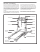 THE INFORMATION MODE/DEMO MODE An “E” (for English) or an “M” (for metric) will appear in the lower right display. Press the Speed increase button to change the unit of measurement, if desired. The console features an information mode that keeps track of treadmill usage information and allows you to select a unit of measurement for the console. To select the information mode, insert the key into the console while holding down the Stop button, and then release the Stop button.