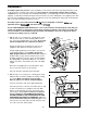 HOW TO LOWER THE TREADMILL FOR USE 1. Hold the upper end of the treadmill with your right hand as shown. Using your left hand, pull the latch knob to the left and hold it. Pivot the treadmill down until the frame is past the pin. Slowly release the latch knob. Latch Knob Pin Catch 2. Hold the treadmill firmly with both hands, and lower the treadmill to the floor. Do not drop the treadmill frame to the floor. CAUTION: To decrease the possibility of injury, bend your legs and keep your back straight.