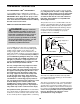 HOW TO LOWER THE TREADMILL FOR USE 1. Hold the treadmill firmly with your left hand. Pull the latch knob to the left and hold it. Pivot the treadmill down until the frame is past the latch pin. Latch Knob Latch Pin Frame 2. Hold the treadmill firmly with both hands, and lower the treadmill to the floor. To decrease the possibility of injury, bend your legs and keep your back straight.