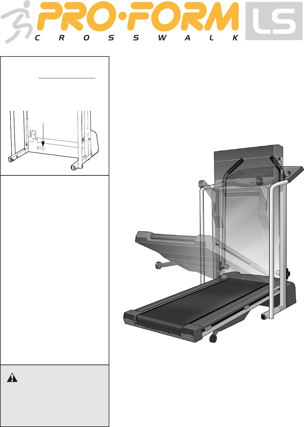 BEFORE YOU BEGIN Thank you for selecting the PROFORM¨ CROSSWALK LS treadmill. The CROSSWALK LS treadmill combines advanced technology with innovative design to let you enjoy an excellent form of cardiovascular exercise in the convenience and privacy of your home. And when youÕre not exercising, the unique CROSSWALK LS can be folded up, requiring less than half the floor space of other treadmills. at 1-800-999-3756, Monday through Friday, 6 a.m. until 6 p.m. Mountain Time (excluding holidays).