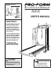 BEFORE YOU BEGIN Thank you for selecting the PROFORM¨ CROSSWALK MX treadmill. The CROSSWALK MX treadmill combines advanced technology with innovative design to let you enjoy an excellent form of cardiovascular exercise in the convenience and privacy of your home. And when youÕre not exercising, the unique CROSSWALK MX can be folded up, requiring less than half the floor space of other treadmills. please call our Customer Service Department toll-free at 1-800-999-3756, Monday through Friday, 6 a.m.