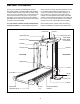 order to raise, lower, or move the treadmill. 14. Never start the treadmill while you are standing on the walking belt. Always hold the handrails or the upper body arms while using the treadmill. 19. When folding or moving the treadmill, make sure that the storage latch is fully closed. 20. Inspect and tighten all parts of the treadmill every three months. 15. The treadmill is capable of high speeds. Adjust the speed in small increments to avoid sudden jumps in speed. 21.