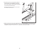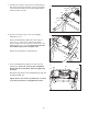 11.Press the lower end of one of the Ski Poles (103) onto the Ball Joint (63) on the Right Extension Leg (109). Press the upper end into the Right Ski Pole Rest (105). Note: It may be helpful to twist the handle of the Ski Pole as you insert it into the Ski Pole Rest. 11 105 Attach the other Ski Pole (not shown) to the left side of the treadmill as described above. 103 109 63 12. Make sure that all parts are properly tightened before you use the treadmill. Note: Extra hardware may be included.