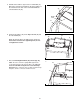 HOW TO LOWER THE TREADMILL FOR USE 1. Hold the upper end of the treadmill with your right hand. Press the storage latch to the left. Pivot the treadmill down until the frame and foot rail are past the storage latch. Storage Latch Catch 2. Hold the treadmill firmly with both hands, and lower the treadmill to the floor. Do not drop the treadmill frame to the floor. To decrease the possibility of injury, bend your legs and keep your back straight.