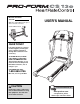 BEFORE YOU BEGIN Thank you for selecting the revolutionary PROFORM® CS13e treadmill. The PROFORM CS13e treadmill combines advanced technology with innovative design to help you get the most from your exercise program in the convenience and privacy of your home. And when you’re not exercising, the unique PROFORM CS13e treadmill can be folded up, requiring less than half the floor space of other treadmills.
