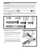 4. With the help of a second person, carefully tip the Uprights (109) down to the position shown. Make sure that the Extension Legs (128) remain in the Uprights. 4 109 100 Attach each Extension Leg (128) with two 3/4” Tek Screws (47) and a Round Base Pad (121) as shown. Note: Attach the lower Tek Screw (without the Round Base Pad) first. 121 100 With the help of a second person, carefully raise the Uprights (109) so the Base Pads (100) are resting on the floor. 47 128 121 47 128 5.