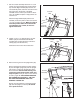 1. Make sure that the power cord is unplugged. 1 With the help of a second person, carefully tip the treadmill onto its left side. Partially fold the Frame (56) so that the treadmill is more stable; do not fully fold the Frame yet. A B 38 Hole 83 Remove and discard the two indicated bolts (A) and the shipping bracket (B). 81 56 2 Cut the tie securing the Upright Wire (38) to the Base (83). Locate the tie in the indicated hole in the Base, and use the tie to pull the Upright Wire out of the hole.