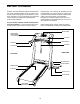 HOW TO LOWER THE TREADMILL FOR USE 1 1. Hold the upper end of the treadmill with your right hand as shown. Using your left hand, pull the latch knob to the left and hold it. Pivot the treadmill down until the frame is past the pin. Slowly release the latch knob. Latch Knob Pin Foot Rail 2. Hold the treadmill firmly with both hands, and lower the treadmill to the floor. Do not drop the treadmill frame to the floor.