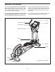 HOW TO EXERCISE ON THE ELLIPTICAL EXERCISER To mount the elliptical exerciser, hold the handlebars and step onto the pedal that is in the lowest position. Next, step onto the other pedal. Push the pedals until they begin to move with a continuous motion. Upper Body Arms Note: The crank arms can turn in either direction. It is recommended that you turn the crank arms in the direction shown by the arrow at the right; however, for variety you can turn the crank arms in the opposite direction.