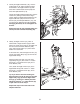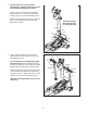 HOW TO USE THE MANUAL MODE 4. Follow your progress with the display. The far left section of the display—This section of the display will show your pedaling pace (in revolutions per minute) and the ramp incline level for a few seconds each time the ramp incline level changes. This section of the display will also show your heart rate when you use the handgrip pulse sensor (see step 5 on page 14). Note: If there is a sheet of clear plastic on the face of the console, remove the plastic. 1.