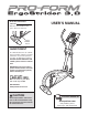 BEFORE YOU BEGIN Thank you for purchasing the revolutionary PROFORM® ERGO STRIDER 3.0 elliptical exerciser. The ERGO STRIDER 3.0 elliptical exerciser provides a wide array of features designed to make your workouts at home more effective and enjoyable. tacting us. The model number and the location of the serial number decal are shown on the front cover of this manual. To avoid a registration fee for any service needed under warranty, you must register the elliptical exerciser at www.proformservice.