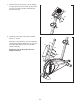 7. Slide the Console Cover (32) (see the drawing in step 6) upward to the Console (4). Attach the Console Cover with four M4 x 16mm Round Head Screws (94). 7 4 94 32 8. Identify the Left Pedal (12), which is marked with an “L” sticker. 94 8 Attach the Left Pedal (12) to the left Pedal Arm (14) with three M10 x 70mm Patch Screws (75), three M10 Split Washers (78), and an M4 x 16mm Screw (84). 12 14 78 Repeat this step on the right side of the elliptical exerciser.