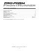 BEFORE YOU BEGIN Thank you for selecting the new PROFORM® FRONT RUNNER treadmill. The FRONT RUNNER treadmill combines advanced technology with innovative design to help you get the greatest benefit from your exercise program in the convenience of your home. And when you’re not exercising, the unique FRONT RUNNER treadmill can be folded up, requiring less than half the floor space of other treadmills.