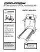 BEFORE YOU BEGIN Thank you for selecting the new PROFORM® FRONT RUNNER treadmill. The FRONT RUNNER treadmill combines advanced technology with innovative design to help you get the greatest benefit from your exercise program in the convenience of your home. And when you’re not exercising, the unique FRONT RUNNER treadmill can be folded up, requiring less than half the floor space of other treadmills.