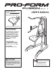 BEFORE YOU BEGIN Thank you for selecting the versatile PROFORM® FUSION 2.1 T exercise rack. The exercise rack is designed to develop the abdominal muscle group. Whether your goal is to tone your body, build dramatic muscle size and strength, or improve your cardiovascular system, the exercise rack will help you to achieve the specific results you want. number and serial number before calling. The model number is PFBE1716.0.