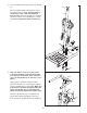 7. Refer to the CABLE DIAGRAM on page 17 to ensure correct cable routing during steps 7 through 14. 7 66 Use the wire in the Left Press Arm (7) to pull the Press Arm Cable (66) up through the Press Arm. Make sure that the Cable is routed around the pulleys above the Press Arm as shown in the inset drawing. 7 Hold a 4" Pulley (42) over the Press Arm Cable (66).