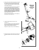 6. While another person holds the Console (4) in the position shown, connect the wire harness on the Console to the Upper Wire Harness (42). Insert the excess wire harness down into the Upright (2). 6 4 Wire Harness Attach the Console (4) to the Upright (2) with four M4 x 16mm Screws (57). Be careful to avoid pinching the wire harnesses. 42 57 2 7. Attach the Left Handlebar Cover (6) to the Console (4) with three M4 x 16mm Screws (57). Attach the Right Handlebar Cover (5) in the same way.