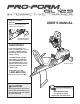Model No. PFEX59031 Serial No. Write the serial number in the space above for reference. USER’S MANUAL Serial Number Decal (beneath stabilizer) QUESTIONS? If you have questions, or if there are missing parts, we will guarantee complete satisfaction through direct assistance from our factory. TO AVOID DELAYS, PLEASE CALL DIRECT TO OUR TOLLFREE CUSTOMER HOT LINE. The trained technicians on our customer hot line will provide immediate assistance, free of charge to you.