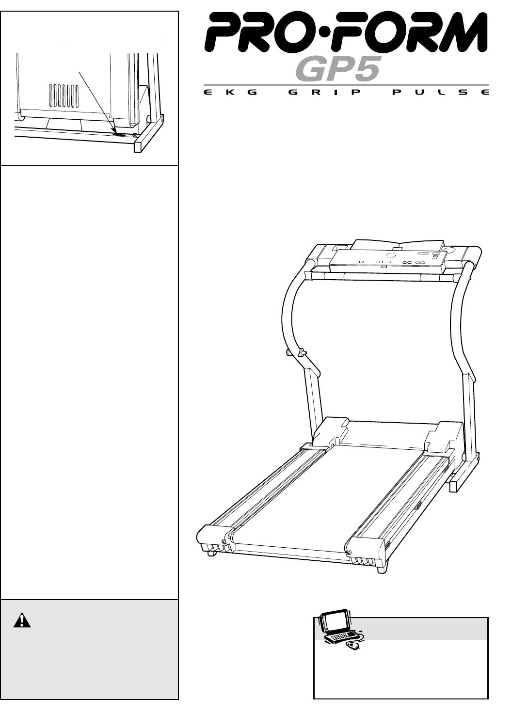 BEFORE YOU BEGIN Thank you for selecting the PROFORM® GP5 treadmill. The GP5 treadmill combines advanced technology with innovative design to let you enjoy an excellent form of cardiovascular exercise in the convenience and privacy of your home. And when you’re not exercising, the unique GP5 can be folded up, requiring less than half the floor space of other treadmills. at 1-800-999-3756, Monday through Friday, 6 a.m. until 6 p.m. Mountain Time (excluding holidays).