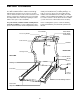 HOW TO LOWER THE TREADMILL FOR USE Open 1. Hold the upper end of the treadmill with your right hand as shown. Using your left hand, pull the latch knob to the left and hold it. Pivot the treadmill down until the frame is past the pin. Slowly release the latch knob. Closed Latch Knob Pin 2. Hold the treadmill firmly with both hands, and lower the treadmill to the floor. CAUTION: To decrease the possibility of injury, bend your legs and keep your back straight.