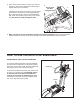 MAINTENANCE AND TROUBLESHOOTING HOW TO MOVE THE ELLIPTICAL EXERCISER Inspect and properly tighten all parts of the elliptical exerciser regularly. Replace any worn parts immediately. Stand in front of the elliptical exerciser, hold the handlebars firmly, and place one foot against one of the wheels. Pull the handlebars until the elliptical exerciser can be moved on the wheels, and carefully move the elliptical exerciser to the desired location.