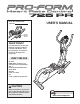 BEFORE YOU BEGIN Congratulations for selecting the new PROFORM® 725 PR elliptical crosstrainer. The PROFORM 725 PR is an incredibly smooth exerciser that moves your feet in a natural elliptical path, minimising the impact on your knees and ankles. And the unique PROFORM 725 PR features adjustable resistance and a state-ofthe-art console to help you get the most from your exercise. Welcome to a whole new world of natural, elliptical-motion exercise from PROFORM.