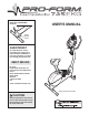 Model No. PFEVEX29832 Serial No. USER'S MANUAL Serial Number Decal QUESTIONS? As a manufacturer, we are committed to providing complete customer satisfaction. If you have questions, or if there are missing parts, please call: 08457 089 009 Or write: ICON Health & Fitness, Ltd. Customer Service Department Unit 4 Revie Road Industrial Estate Revie Road Beeston Leeds, LS118JG UK email: csuk@iconeurope.com CAUTION Read all precautions and instructions in this manual before using this equipment.