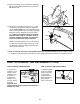 4. Hold the Console (9) near the Handlebar (16) as shown. Identify the green console ground wire and attach it to the Handlebar with a Console Back Screw (20). Make sure that the console ground wire connector is pointed toward the center of the indicated hole as shown. 4 Console Wires 18 16 Next, connect the Reed Switch Wire (18) and the two Pulse Wires (33) to the corresponding wires on the Console (9). 33 9 Hole 5. Attach the Console (9) to the Handlebar (16) with four Console Back Screws (20).
