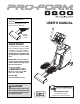 BEFORE YOU BEGIN Thank you for selecting the revolutionary PROFORM® I SERIES 800 elliptical exerciser. The I SERIES 800 elliptical exerciser provides an impressive array of features designed to make your workouts at home more effective and enjoyable. tacting us. The model number and the location of the serial number decal are shown on the front cover of this manual. To avoid a registration fee for any service needed under warranty, you must register the elliptical exerciser at www.proformservice.