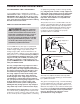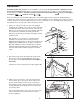 HOW TO LOWER THE TREADMILL FOR USE 1. Hold the upper end of the treadmill with your right hand as shown. Using your left hand, pull the storage latch to the left and hold it. Pivot the treadmill down until the frame is past the pin on the storage latch. Storage Latch 2. Hold the treadmill firmly with both hands, and lower the treadmill to the floor. CAUTION: To decrease the possibility of injury, bend your legs and keep your back straight. Do not drop the treadmill.