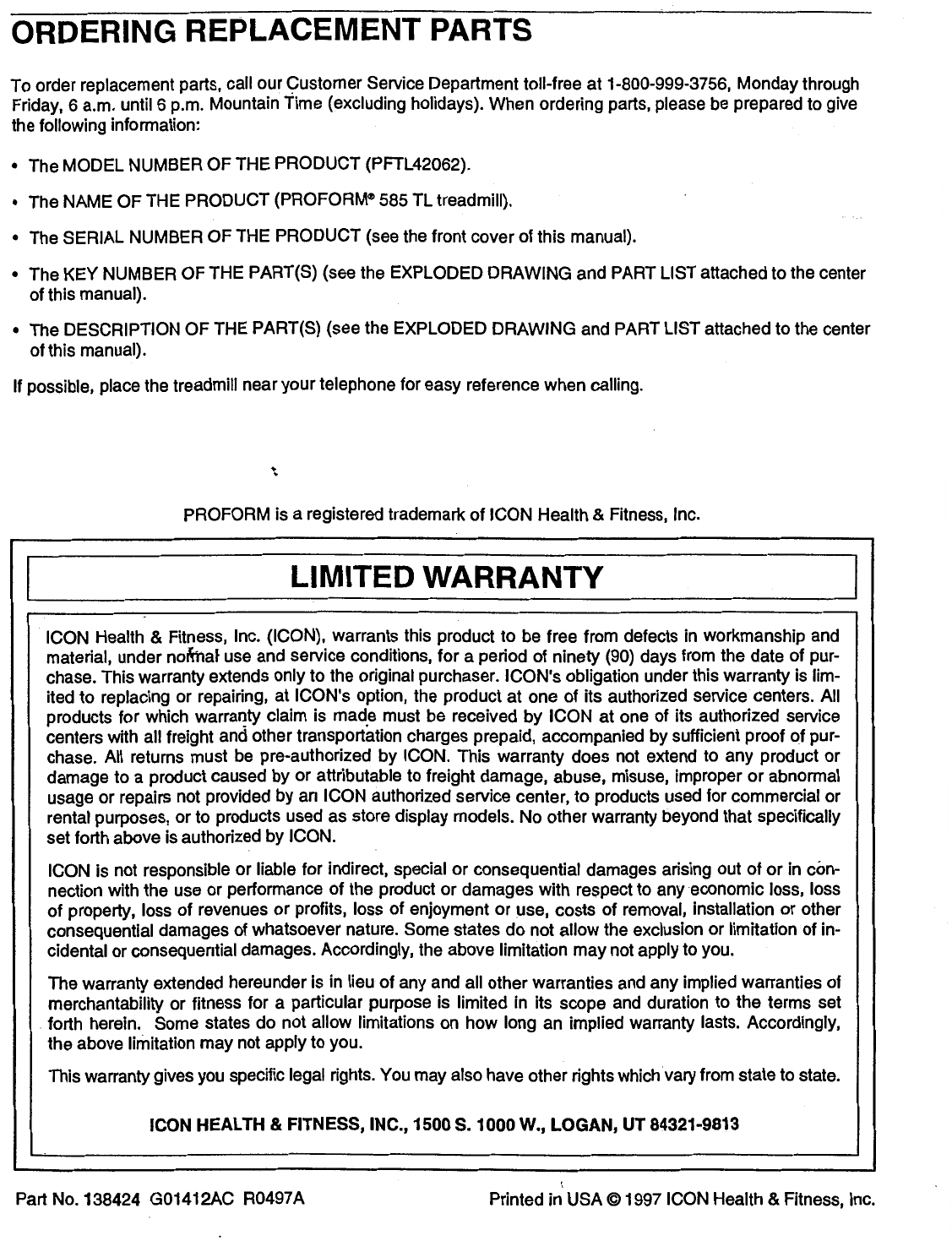 ProForm LOW PROFILE TREADMILL 585 TL (No. PFTL42062)
