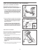 HOW TO LOWER THE TREADMILL FOR USE 1. Hold the upper end of the treadmill with your right hand as shown. Using your left thumb, press the storage latch and hold it. Pivot the treadmill until the frame and foot rail are past the storage latch. If necessary, press the upright to the left. Unlatched Storage Latch 2. Hold the treadmill firmly with both hands, and lower the treadmill to the floor. Do not drop the treadmill frame to the floor.