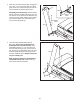 17. Maak het bovenste uiteinde van de Opbergvergrendeling (53) aan het Onderstel (56) vast met een 3/8" x 1 3/4" Bout (6) en een 3/8" Moer (12). Aandacht: het kan nodig zijn om het Onderstel wat naar voren en naar achteren te schuiven om de Opbergvergrendeling gelijk te stellen met het Onderstel. 17 56 12 aat het Onderstel (56) neer (zie HOE L DE LOOPBAND NEER TE LATEN VOOR GEBRUIK op bladzijde 25). 6 53 20. Zorg dat alle onderdelen goed vastgedraaid zijn voordat u de loopband gebruikt.