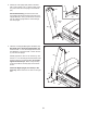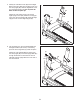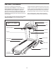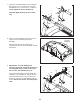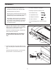 18. Attach the Rear Feet (57) to the Frame (56) as shown with four #8 x 3/4" Screws (2). 18 Lower the Frame (56) (see HOW TO LOWER THE TREADMILL FOR USE on page 28). 57 57 2 2 56 19. Press the Grommet (77) into the square hole in the Base (94). 19 94 77 20. Make sure that all parts are properly tightened before you use the treadmill. If there are sheets of plastic on the treadmill decals, remove the plastic. To protect the floor or carpet, place a mat under the treadmill.