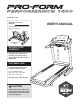 BEFORE YOU BEGIN Thank you for selecting the revolutionary PROFORM® PERFORMANCE 1450 treadmill. The PERFORMANCE 1450 treadmill offers an impressive selection of features designed to make your workouts at home more enjoyable and effective. And when you’re not exercising, the unique treadmill can be folded up, requiring less than half the oor space of other treadmills. reading this manual, please see the front cover of this manual.