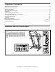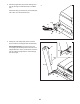 19. Attach the Rear Feet (57) to the Frame (56) as shown with four #8 x 3/4" Screws (2). 19 Lower the Frame (56) (see HOW TO LOWER THE TREADMILL FOR USE on page 32). 57 57 2 2 56 20. Press the Grommet (77) into the square hole in the Base (94). 20 94 77 21. Make sure that all parts are properly tightened before you use the treadmill. If there are sheets of plastic on the treadmill decals, remove the plastic. To protect the oor or carpet, place a mat under the treadmill.