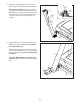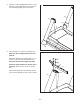 8. Set the console assembly on the Handrails (71). Be careful not to pinch any wires. Insert the excess Upright Wire (70) into the Left Upright (75). 8 Attach the console assembly with the four 1/4" x 1/2" Screws (9) removed in step 6 and four 1/4" Star Washers (11). Start all four Screws, and then tighten them. 71 71 70 11 11 9 9. I MPORTANT: To avoid damaging the Pulse Crossbar (31), do not use power tools and do not overtighten the #10 x 3/4" Screws (13).