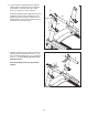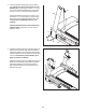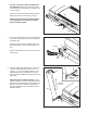 18. Attachez les Pieds Arrière (57) sur le Cadre (56), comme sur le schéma, à l'aide de quatre Vis #8 x 3/4" (2). 18 Reportez-vous à l'étape 16. Jeter le morceau de carton. 57 Abaissez le Cadre (56) (voir COMMENT ABAISSER LE TAPIS DE COURSE POUR L'UTILISATION à la page 25). 2 57 2 56 19. Assurez-vous que toutes les pièces sont correctement serrées avant d’utiliser le tapis de course. Si des pellicules en plastique recouvrent les autocollants du tapis de course, retirez les pellicules.