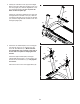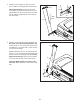 . Attach the Wheels (92) to the Base (95) with two 3/8" x 2 1/2" Bolts (20) and two 3/8" Nuts (12). Do not overtighten the Bolts. The Wheels must spin freely. 14 63 Lower the Frame (63) (see HOW TO LOWER THE TREADMILL FOR USE on page 24). 95 20 92 12 12 92 20 15. Make sure that all parts are properly tightened before you use the treadmill. If there are sheets of plastic on the treadmill decals, remove the plastic. To protect the floor or carpet, place a mat under the treadmill.