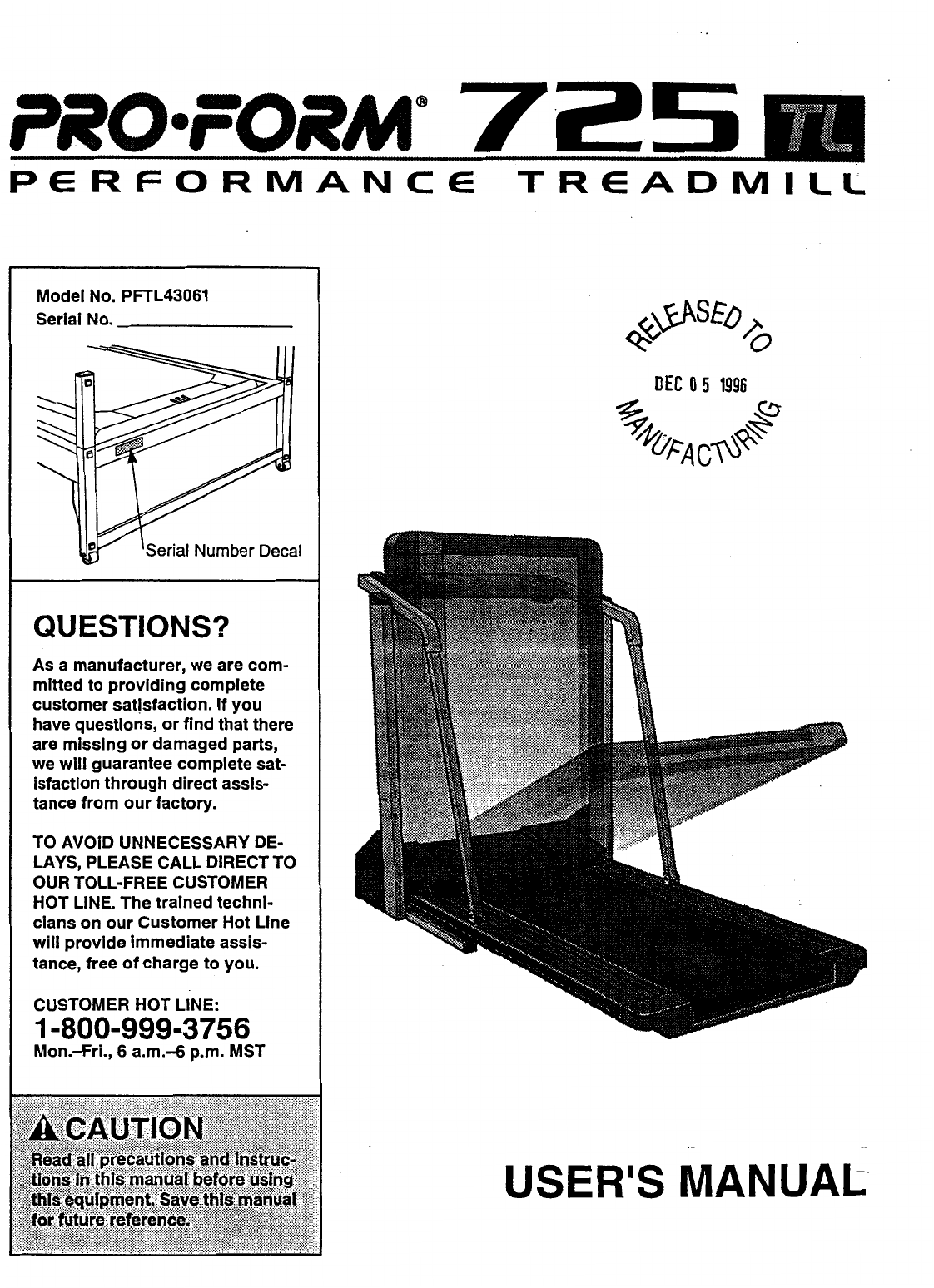 ProForm PERFORMANCE TREADMILL 725TL (No. PFTL43061)