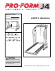 BEFORE YOU BEGIN Thank you for selecting the new PROFORM¨ J4 treadmill. The J4 treadmill combines advanced technology with innovative design to let you enjoy an excellent form of cardiovascular exercise in the convenience and privacy of your home. And when youÕre not exercising, the unique J4 can be folded up, requiring less than half the floor space of other treadmills. Monday through Saturday, 7 a.m. until 7 p.m. Central Time (excluding holidays).
