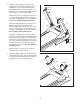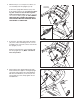 7. Slide the Right Upright Sleeve (96) up against the console assembly. Attach the Right Upright Sleeve with two 3/4" Screws (4). 7 Attach the Left Upright Sleeve (not shown) as described above. 4 96 4 8. With the help of a second person, raise the front of the treadmill and insert the crossbar on the Base (83) into the cutout in the cardboard stand as shown. Have the second person hold the treadmill to prevent it from moving forward or backward. 8 Firmly tighten the four Upright Bolts (72).