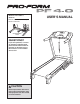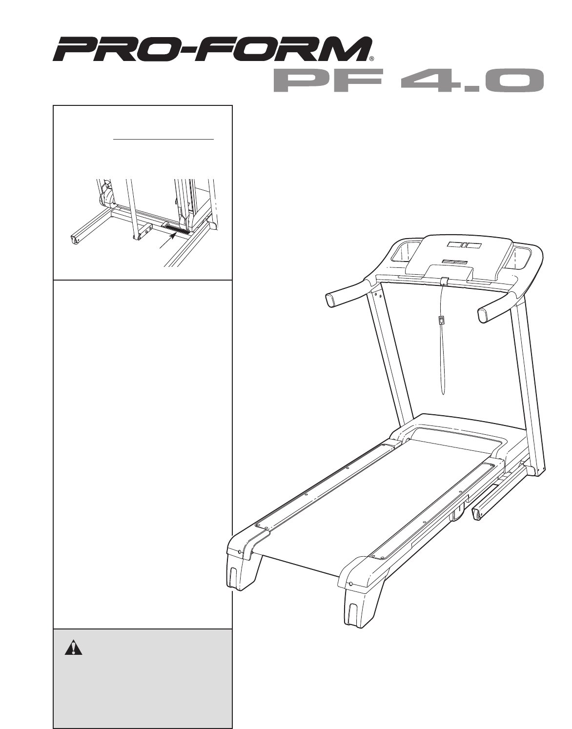 BEFORE YOU BEGIN Thank you for selecting the revolutionary PROFORM® PF 4.0 treadmill. The PF 4.0 treadmill offers an impressive array of features designed to make your workouts at home more enjoyable and effective. And when you’re not exercising, the unique PF 4.0 treadmill can be folded up, requiring less than half the floor space of other treadmills. ing this manual, please see the dealer contact information on the back cover of this manual or on the included service card.
