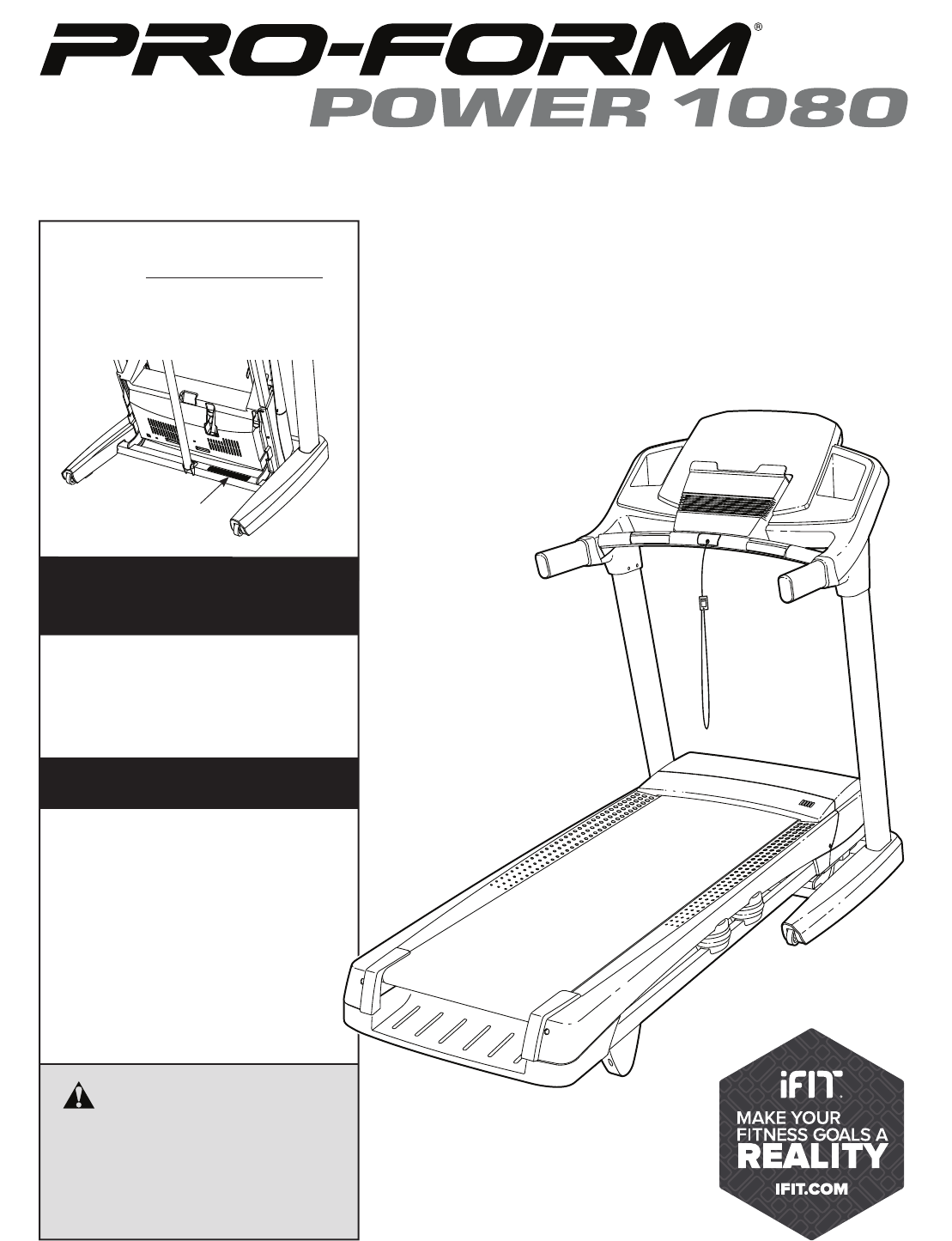 BEFORE YOU BEGIN Thank you for selecting the revolutionary PROFORM® POWER 1080 treadmill. The POWER 1080 treadmill offers an impressive selection of features designed to make your workouts at home more enjoyable and effective. And when you’re not exercising, the unique treadmill can be folded up, requiring less than half the floor space of other treadmills. reading this manual, please see the front cover of this manual.