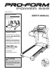 BEFORE YOU BEGIN Thank you for selecting the revolutionary PROFORM® POWER 995 treadmill. The POWER 995 treadmill offers an impressive selection of features designed to make your workouts at home more enjoyable and effective. And when youʼre not exercising, the unique treadmill can be folded up, requiring less than half the floor space of other treadmills. ing this manual, please see the front cover of this manual.