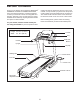 HOW TO TURN ON THE POWER HOW TO USE THE MANUAL MODE IMPORTANT: If the treadmill has been exposed to cold temperatures, allow it to warm to room temperature before turning on the power. If you do not do this, you may damage the console displays or other electrical components. 1. Insert the key into the console. Plug in the power cord (see page 15). Next, locate the power switch on the treadmill frame near the power cord. Press the power switch into the reset position.
