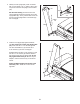 7. Attach the Left Handrail (88) to the Left Upright (89) with two 5/16" x 1" Screws (5), two 5/16" Star Washers (11), and a 5/16" x 1 1/4" Bolt (4). Do not fully tighten the Screws and Bolt yet. 7 4 Attach the Right Handrail (87) in the same way. 11 87 5 5 4 11 88 89 8. Set the console assembly face down on a soft surface to avoid scratching the console assembly. Remove the two Screws (A). Next, lift off the Crossbar (93). Discard the two Screws. 8 Console Assembly A 93 9.