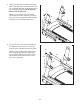 15. Attach the Left Tray (107) and the Right Tray (108) to the console assembly with four #8 x 1/2" Screws (1). 15 108 107 1 1 16. IMPORTANT: See page 15 and plug in the power cord. Next, see page 17 and turn on the power. 16 Then, press the Incline increase button once. When the frame stops moving, remove the key from the console and unplug the power cord.